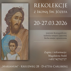 Zapraszamy serdecznie w dniach 20-27.03.2026 na rekolekcje i warsztaty z ikoną św. Józefa w Marianum.